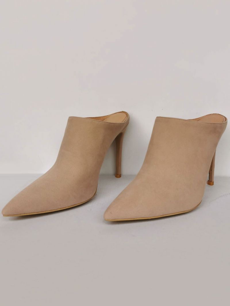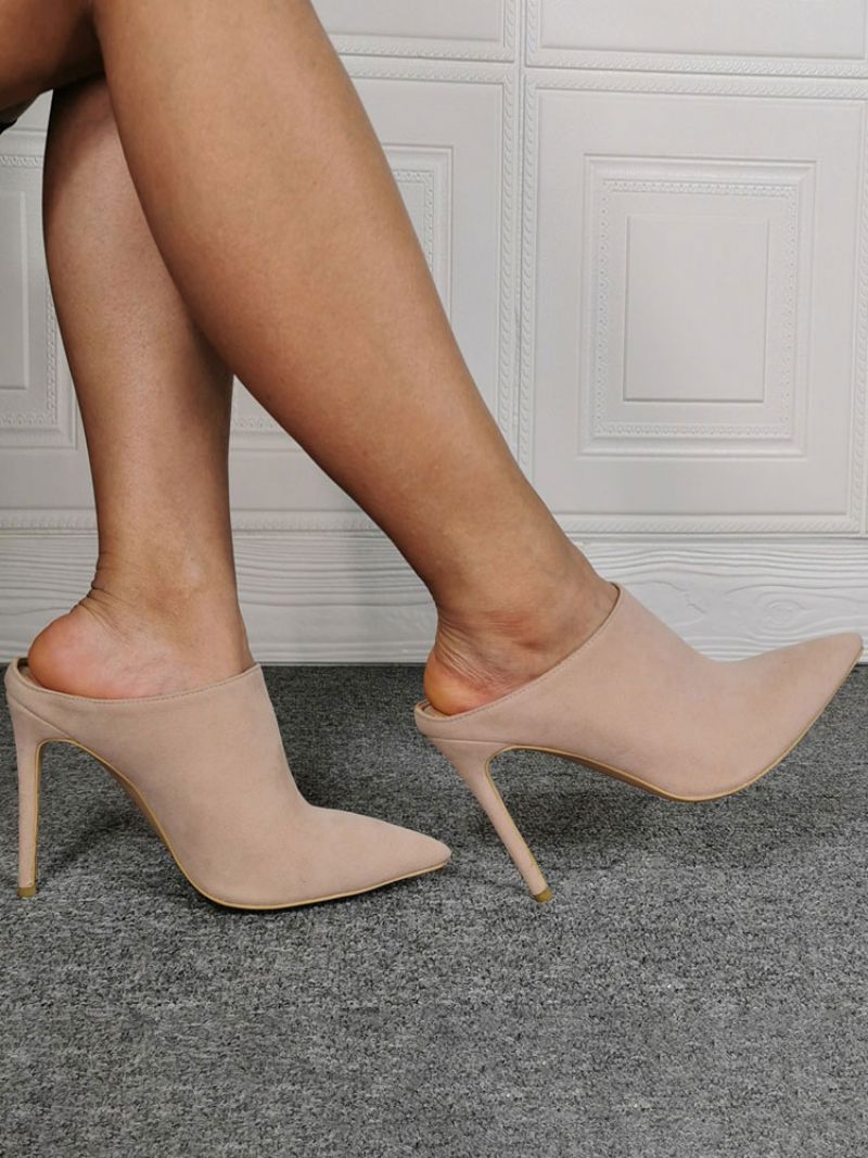 Damskie Klapki Na Wysokim Obcasie Zamszowe Wsuwane Buty Ze Szpiczastymi Noskami