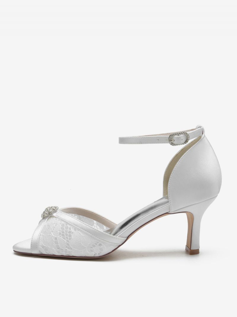Damskie Koronkowe Buty Ślubne Peep Toe Dżetów Na Grubym Obcasie
