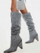 Damskie Kozaki Do Kolan Z Niskim Obcasem I Kryształkami Na Obcasie W Kształcie Stożka