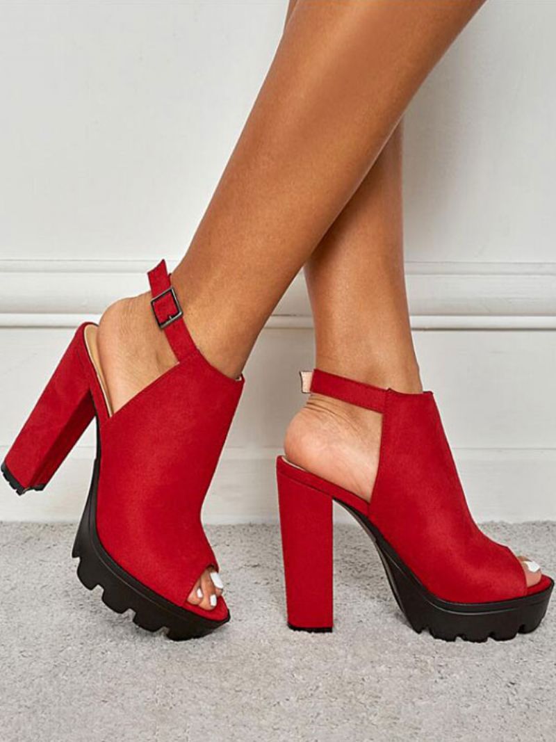 Damskie Letnie Sandały Na Grubym Obcasie Zamszowe CZerwone Botki Pasku