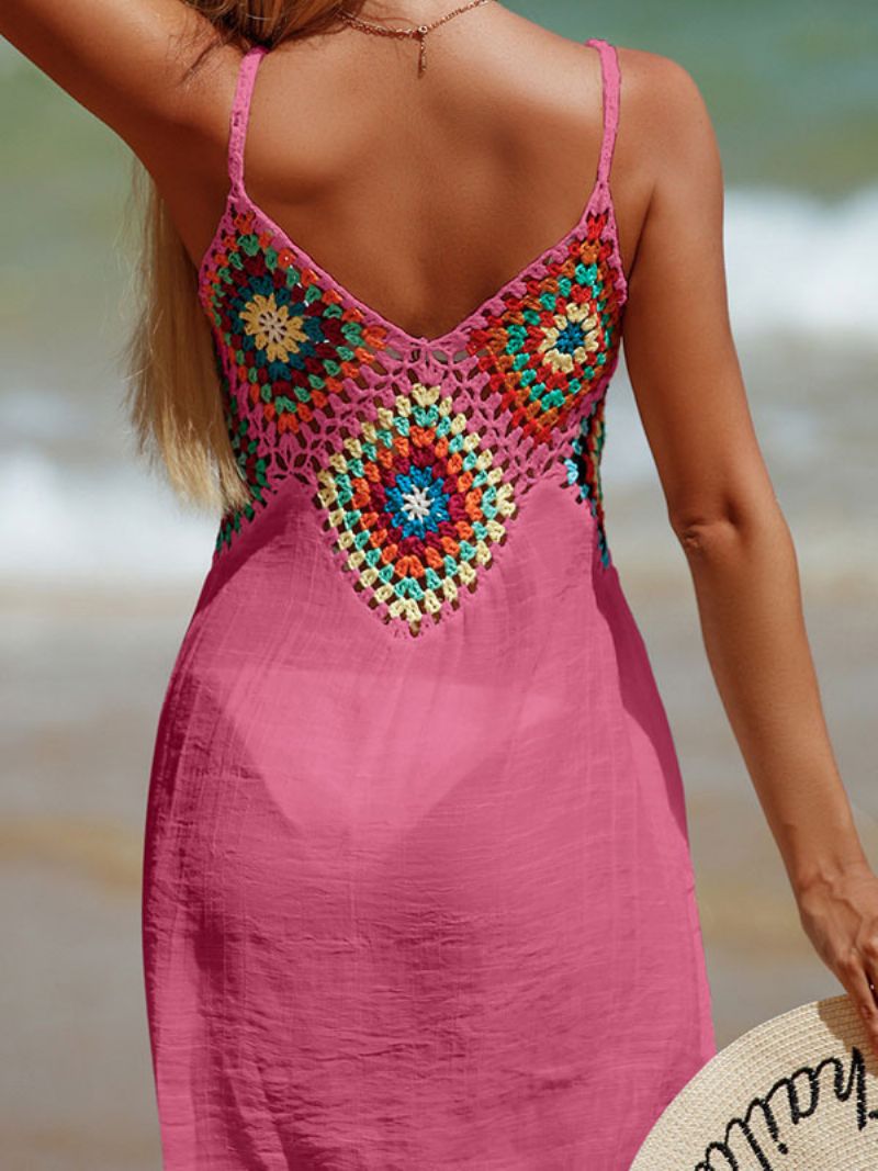 Damskie Okrycia W Kolorze Różowego Bloku Z Wyciętymi Paskami Na Szyję Bez Rękawów Poliestrowe Letnie Seksowne Kostiumy Kąpielowe