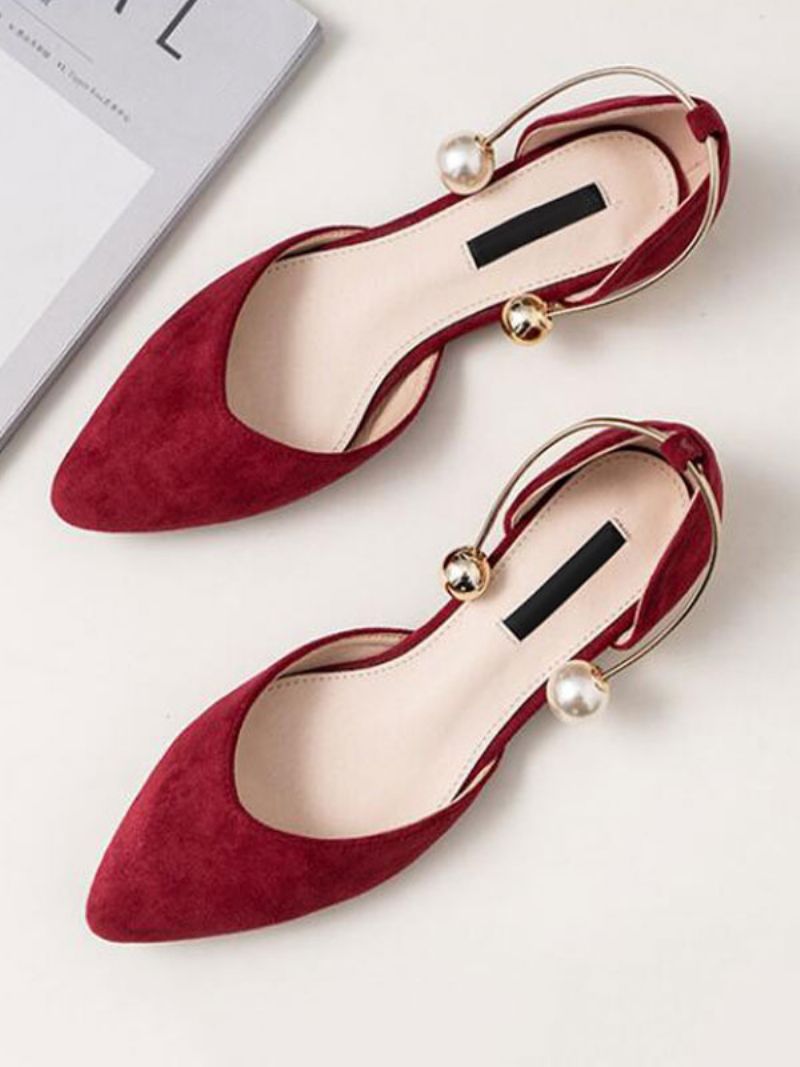 Damskie Płaskie Buty Nude Pointed Toe Slip-on Metalowe Detale Pasek Na Kostkę Baleriny