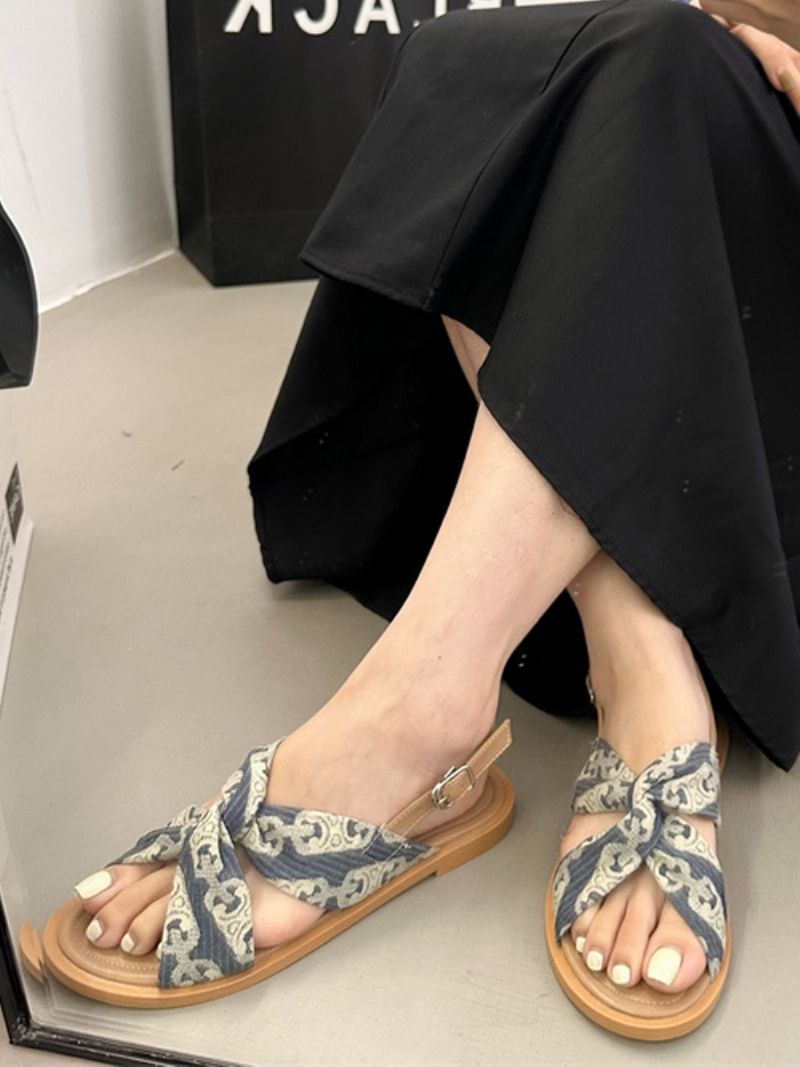 Damskie Regulowane Płaskie Sandały Z Paskiem Do Malowania Tekstylne Odkrytymi Palcami