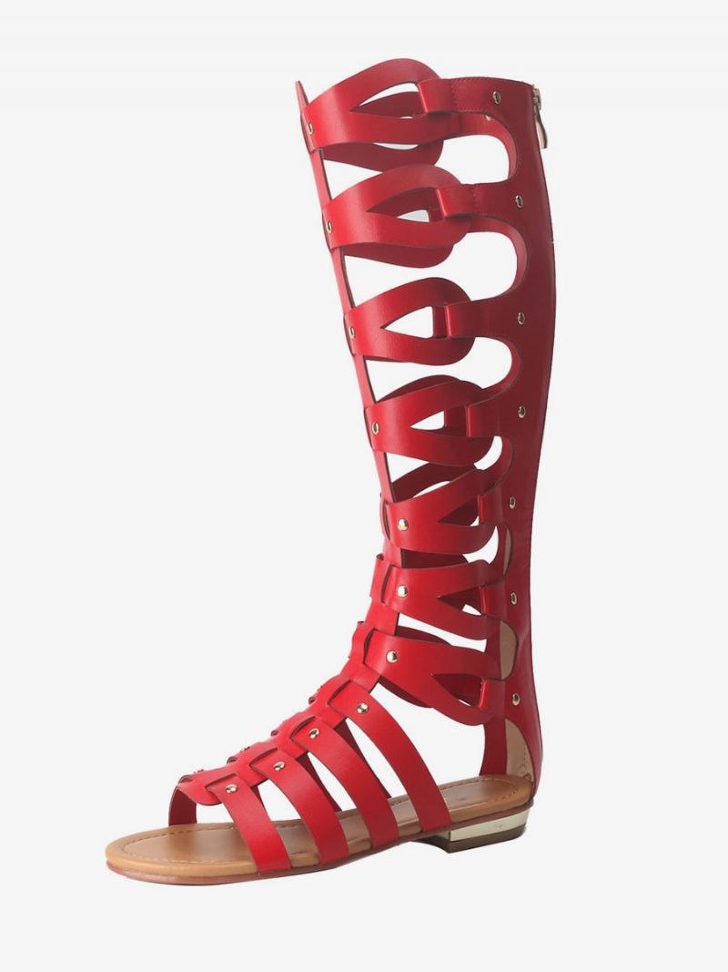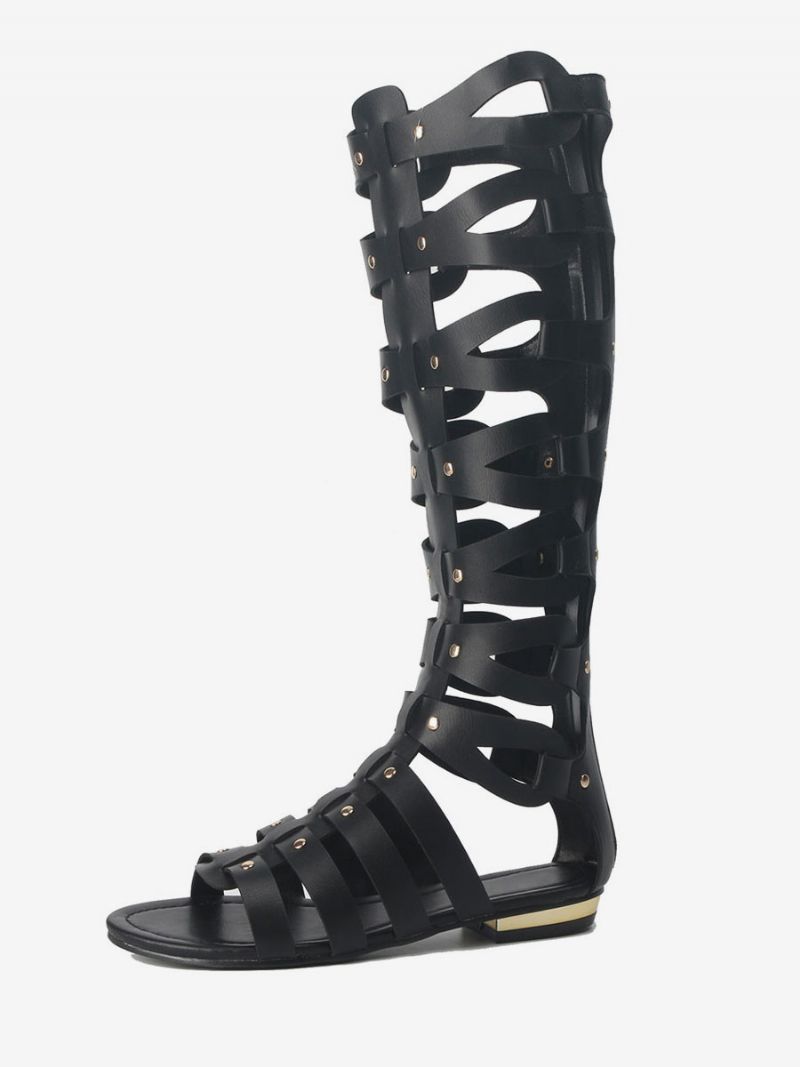Damskie Sandały Gladiatorki Za Kolano Płaskie Z Odkrytymi Palcami I Ćwiekami