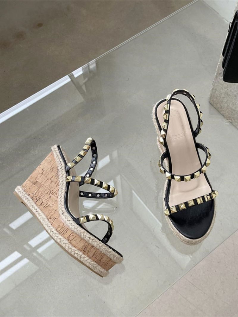 Damskie Sandały Na Koturnie Nity Z Okrągłymi CZubkami