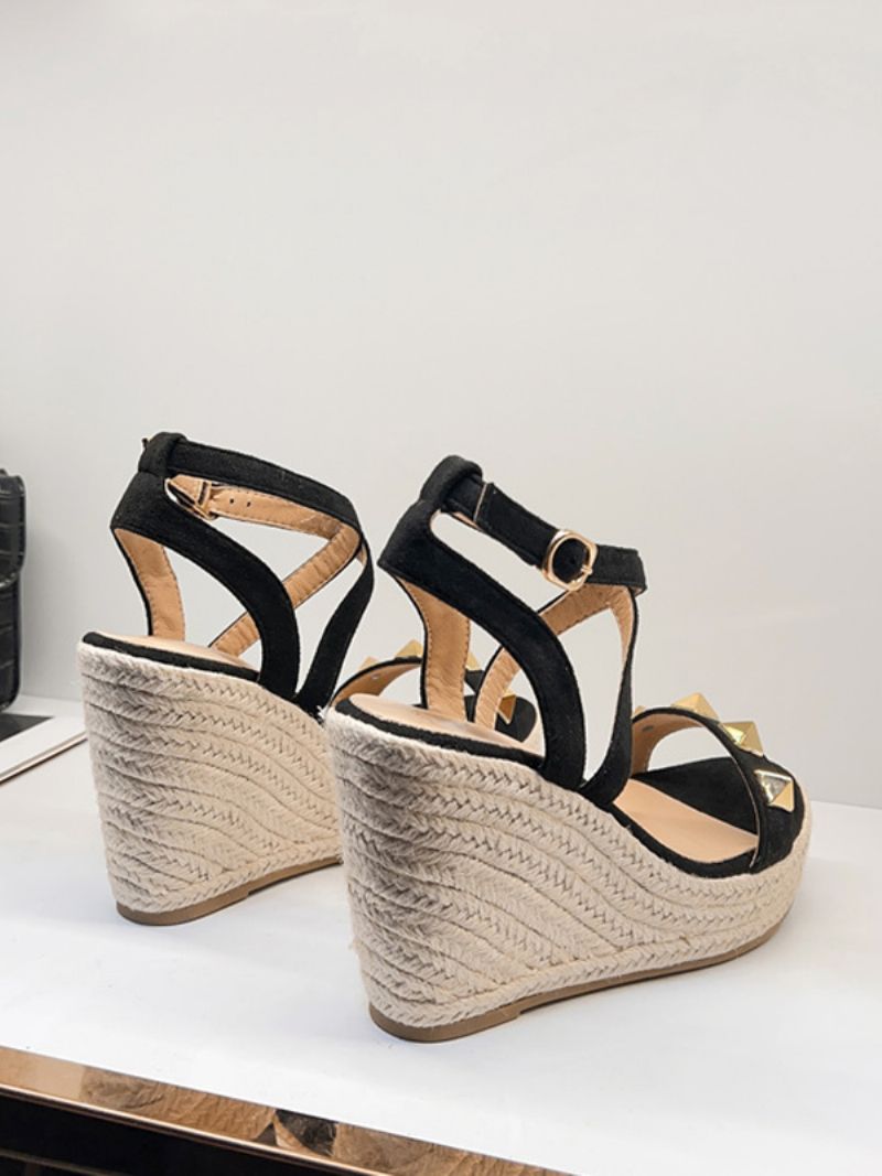 Damskie Sandały Na Koturnie Platformy Nity Zamszowe Krzyżowe