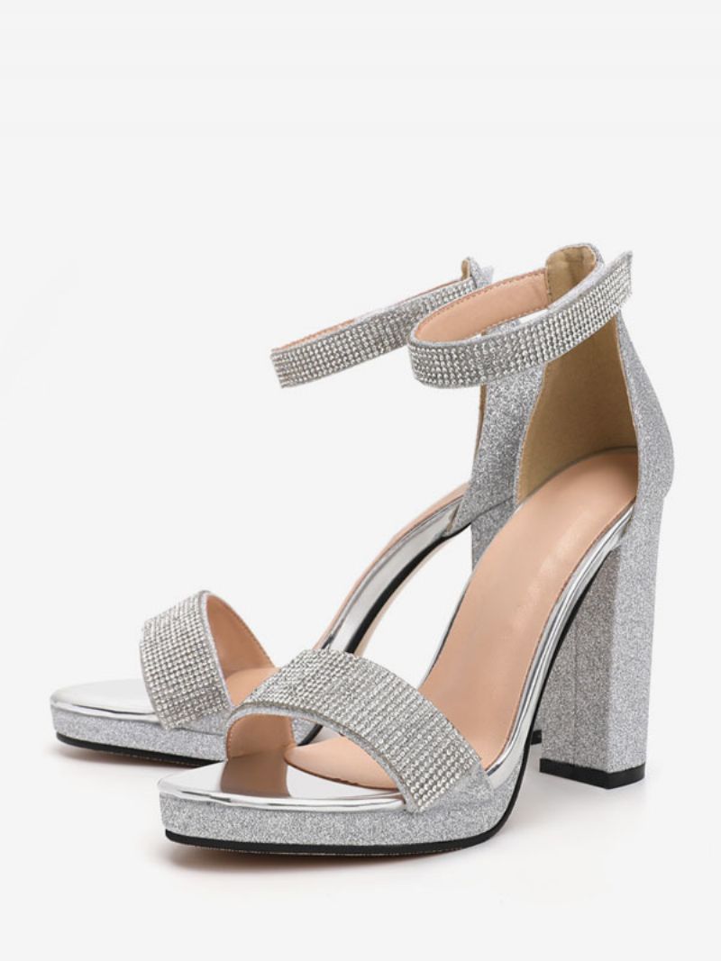 Damskie Sandały Na Obcasie Z Odkrytymi Palcami Gruby Obcas Cekinami