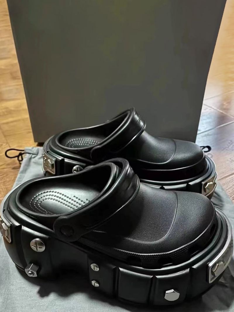 Damskie Sandały Wsuwane CZarne Klapki Na Platformie Z Koralikami I Bez Pięty