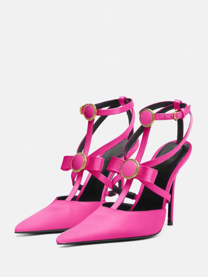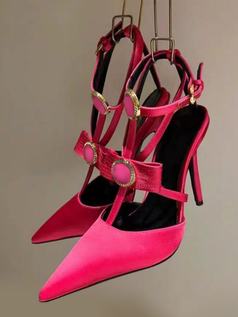 Damskie Satynowe Buty Na Wysokim Obcasie Ze Szpiczastym Noskiem I Kokardką Z Paskiem Szpilce Studniówkę