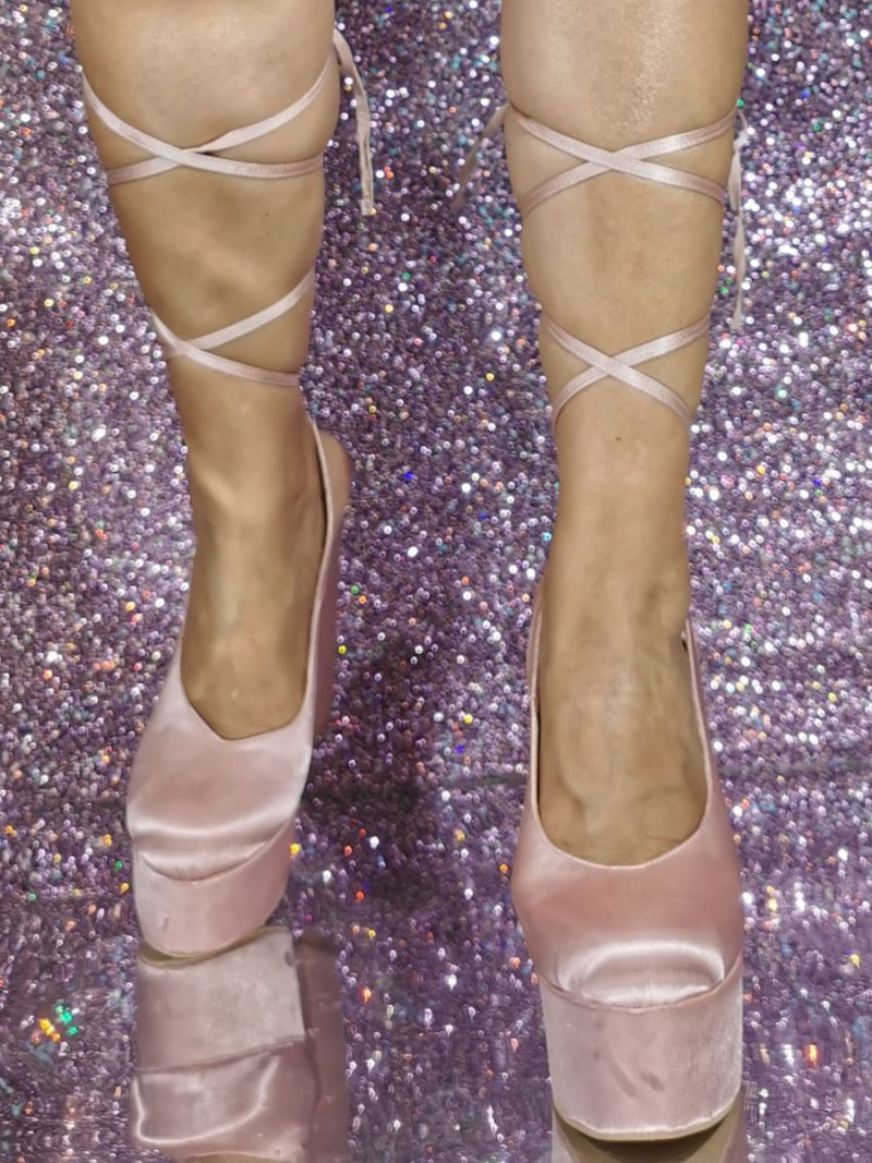 Damskie Satynowe Pantofle Na Platformie I Sznurowane Szpilki