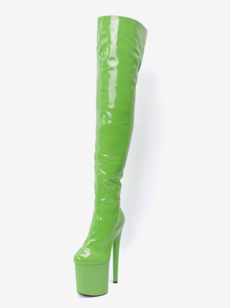 Damskie Seksowne Buty Na Wysokim Obcasie Okrągłe Noski Zamek Błyskawiczny Szpilka Taniec Rurze Trawa Zielone Kozaki Za Kolano