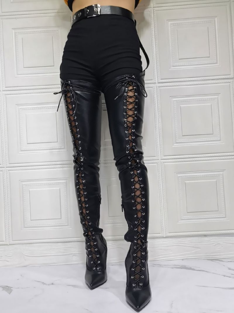 Damskie Seksowne Buty Na Wysokim Obcasie Plus Rozmiar Szpiczaste CZubki Buta Regulowana Klamra Szpilki CZarne Zakolanówki