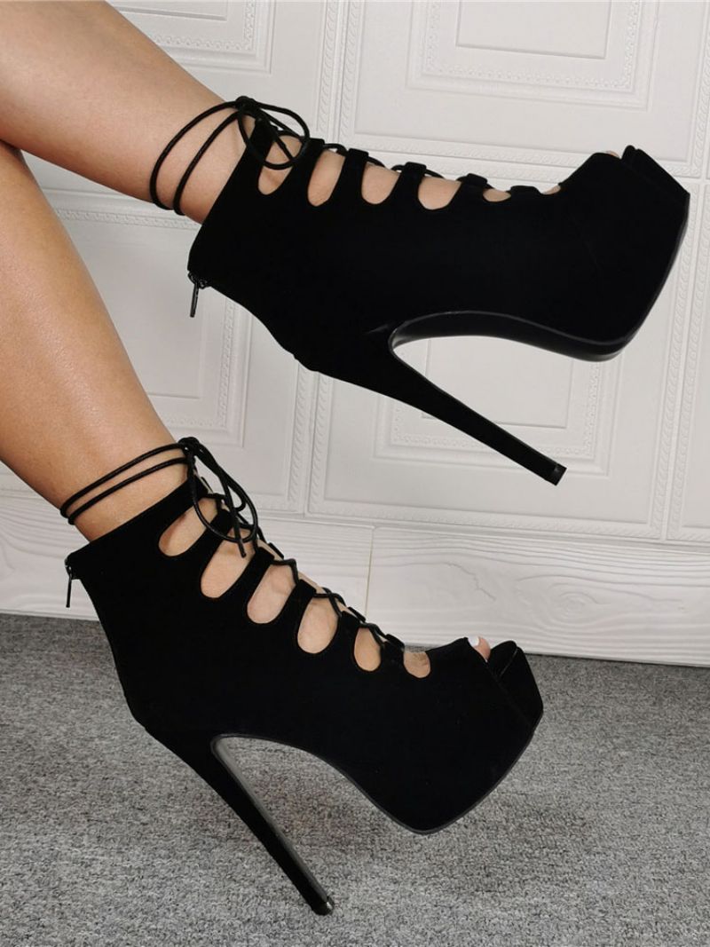Damskie Seksowne Sandały Na Wysokim Obcasie CZarne Mikro Zamszowe Górne Szpilki Plus Size Buty