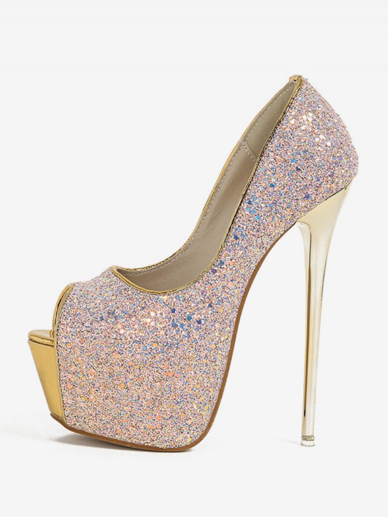 Damskie Seksowne Szpilki Na Szpilce Cekinowe CZółenka Z Tkaniny