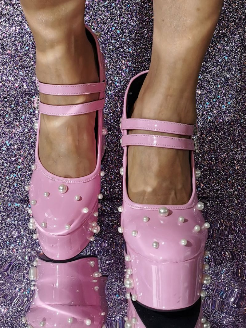 Damskie Seksowne Szpilki Z Perłami Patentowa Cholewka Pu CZółenka
