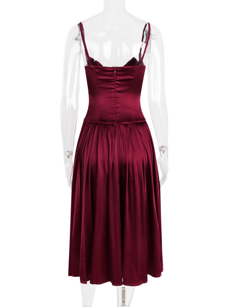 Damskie Sukienki Imprezowe Burgundowe Paski Plisowana Bez Rękawów Półformalna Sukienka