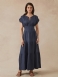 Damskie Sukienki Imprezowe Ciemnogranatowa Zdobiona Szarfa Z Kołnierzykiem Krótkie Rękawy Kwiatowy Nadruk Półformalna Sukienka