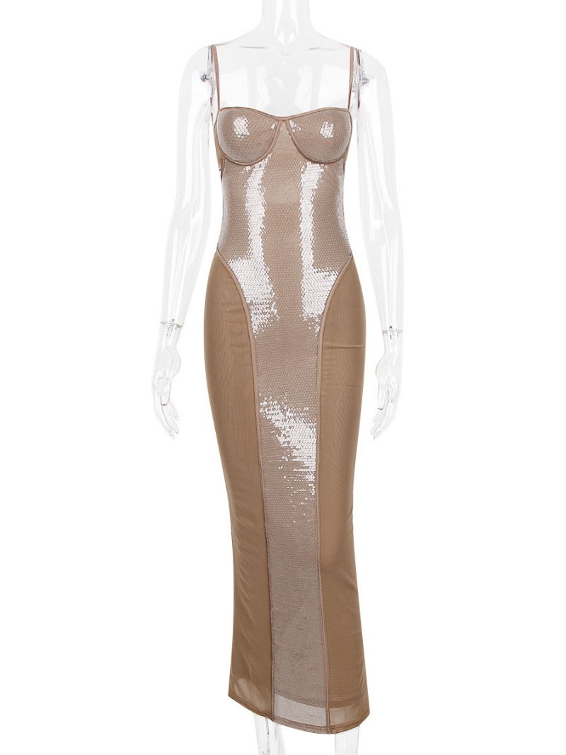 Damskie Sukienki Imprezowe Kawowo-brązowe Paski Szyja Cekiny Bez Rękawów Nieregularna Półformalna Sukienka