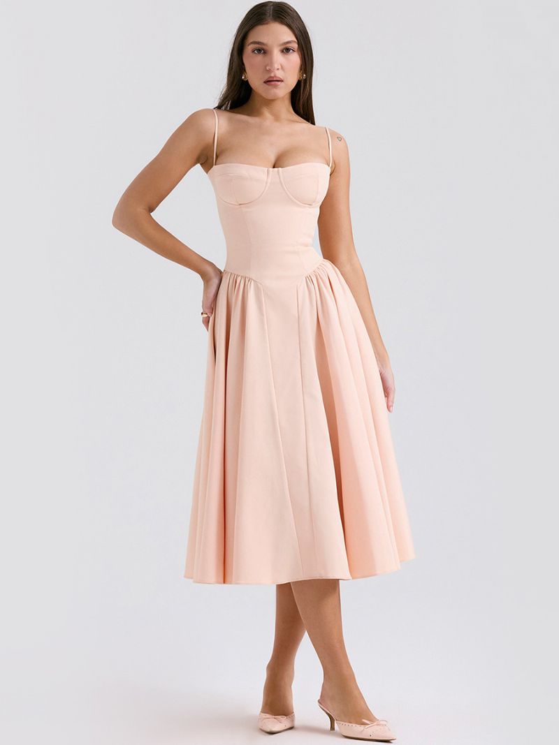 Damskie Sukienki Imprezowe Khaki Ramiączka Plisowana Bez Rękawów Półformalna Sukienka