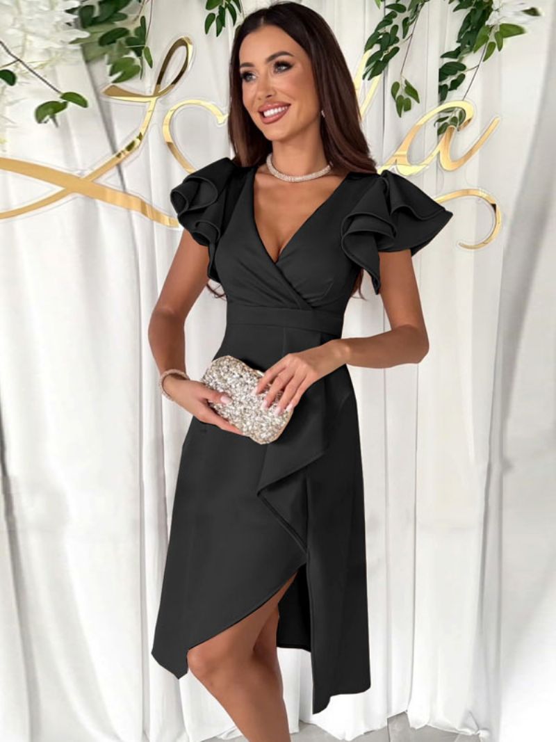 Damskie Sukienki Imprezowe Morelowa Plisowana Bez Rękawów Z Dekoltem W Kształcie Litery V Asymetryczna Półformalna Sukienka
