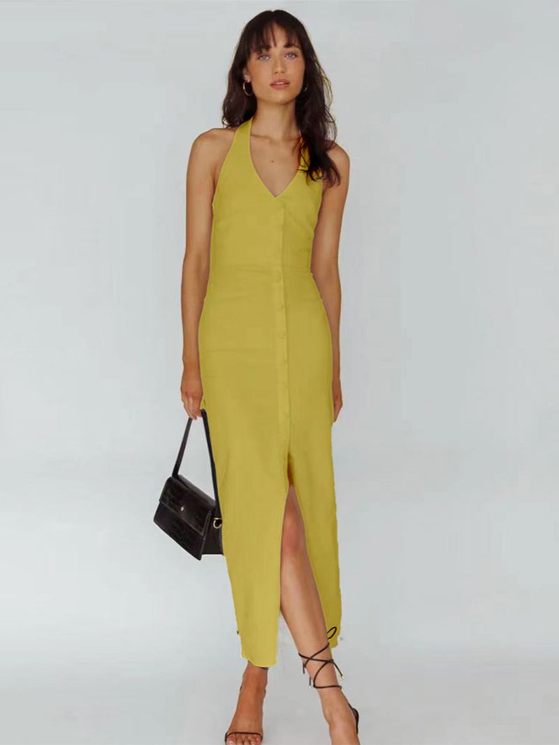Damskie Sukienki Imprezowe Zielone Guziki Wiązane Na Szyi Bez Rękawów Rozkładana Półformalna Sukienka