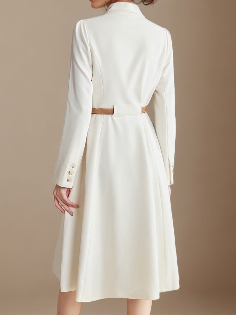 Damskie Sukienki Marynarskie Z Klapami I Paskiem Długimi Rękawami Do Kolan Biznesowa Sukienka Na Co Dzień