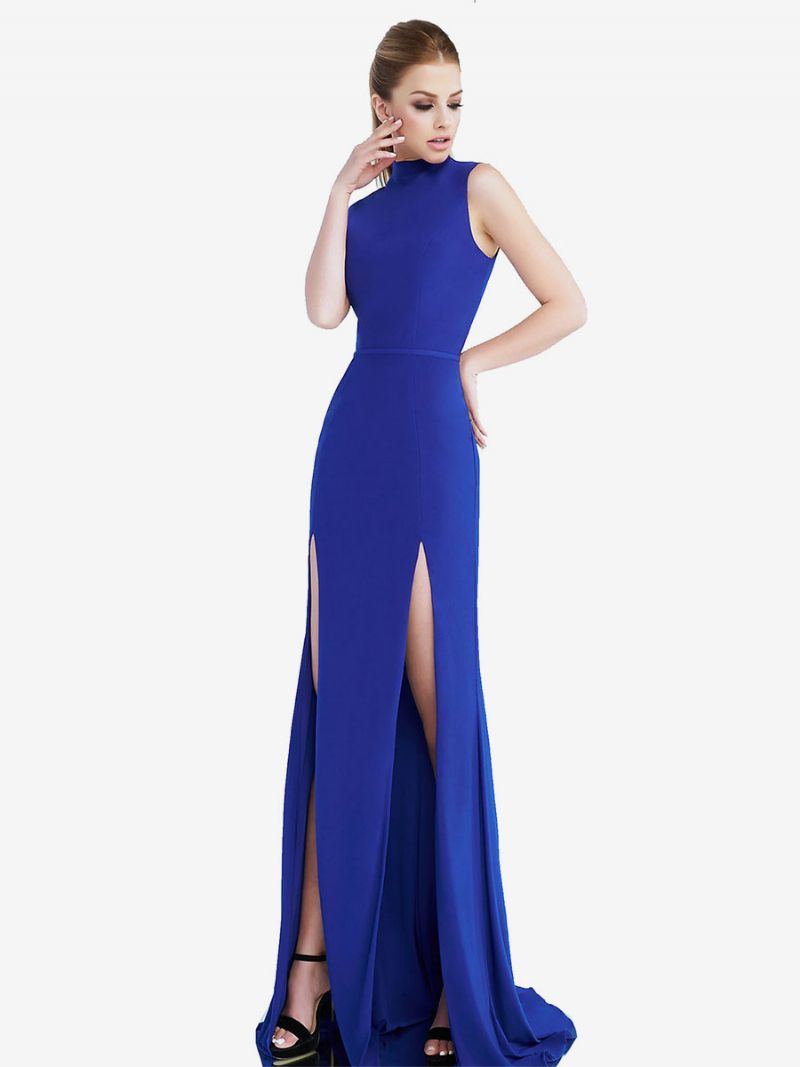 Damskie Sukienki Maxi Na Studniówkę CZerwona Z Dekoltem W Kształcie Biżuteryjnego Bez Rękawów Wysokim Rozcięciem Półformalna Sukienka