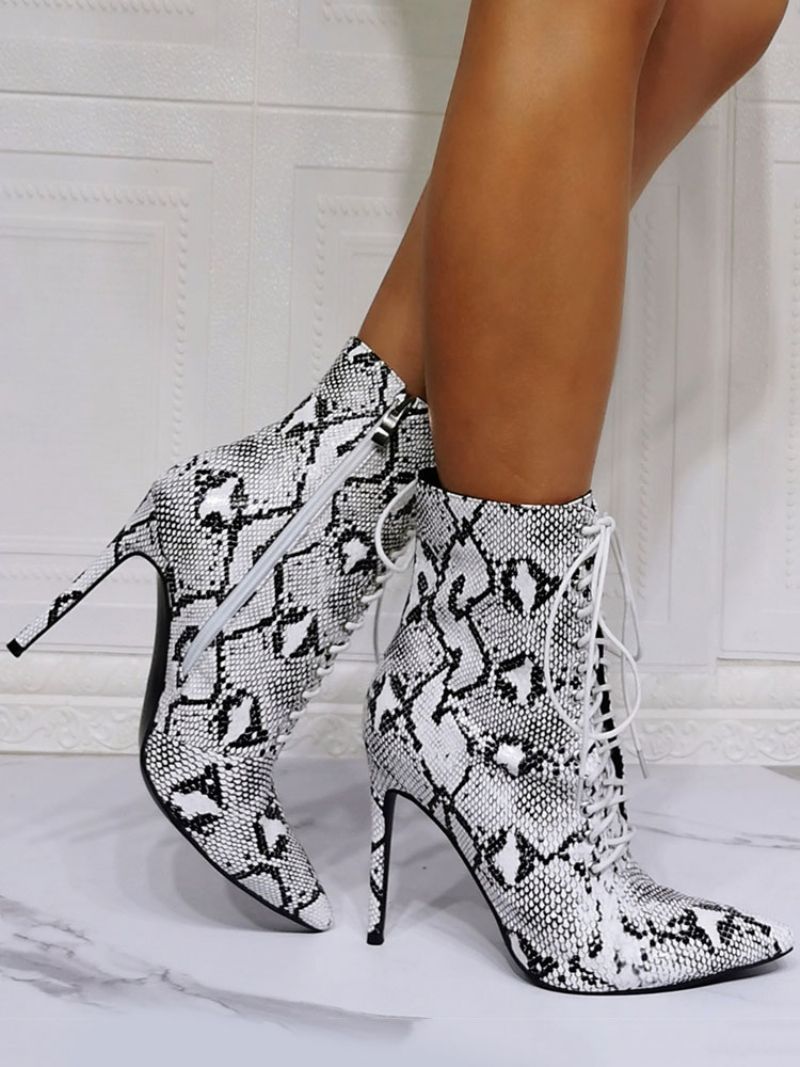 Damskie Sznurowane Botki Python Na Szpilce Szare