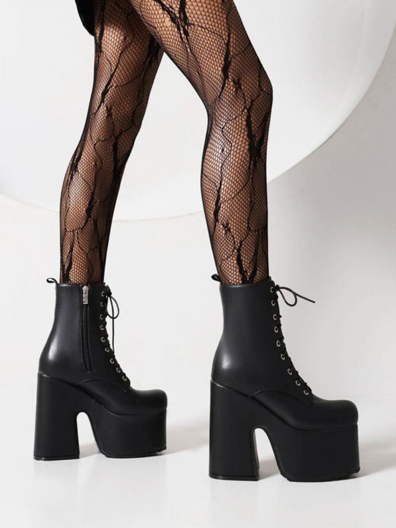 Damskie Sznurowane Botki Z Okrągłym Noskiem I Botkami Na Grubym Obcasie