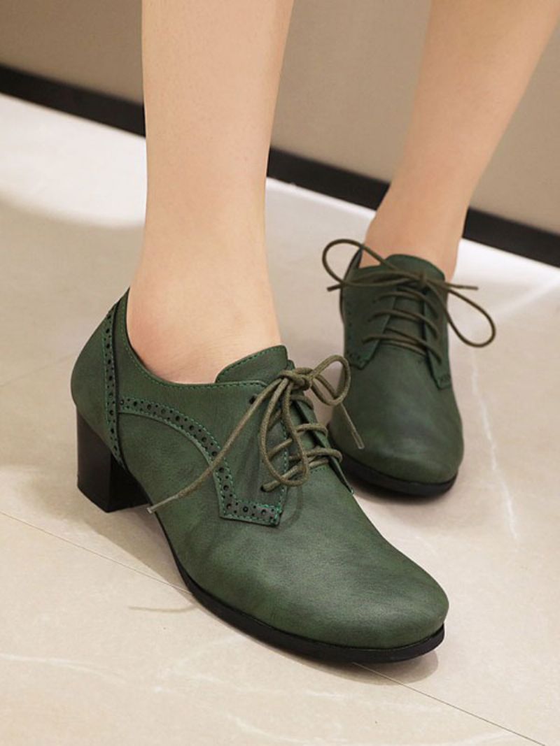 Damskie Sznurowane Brogsy Na Obcasie Klockowym