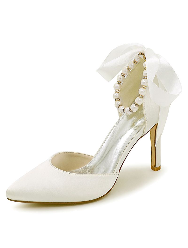 Damskie Sznurowane CZółenka Ślubne Z Paskiem Na Kostkę