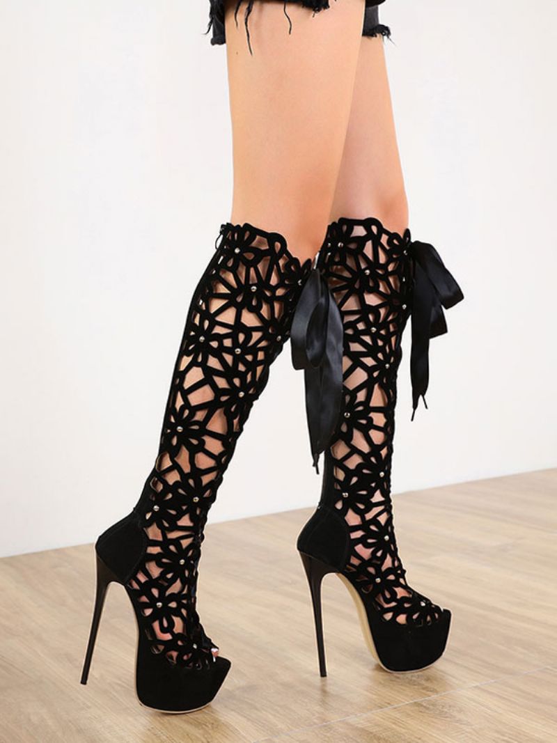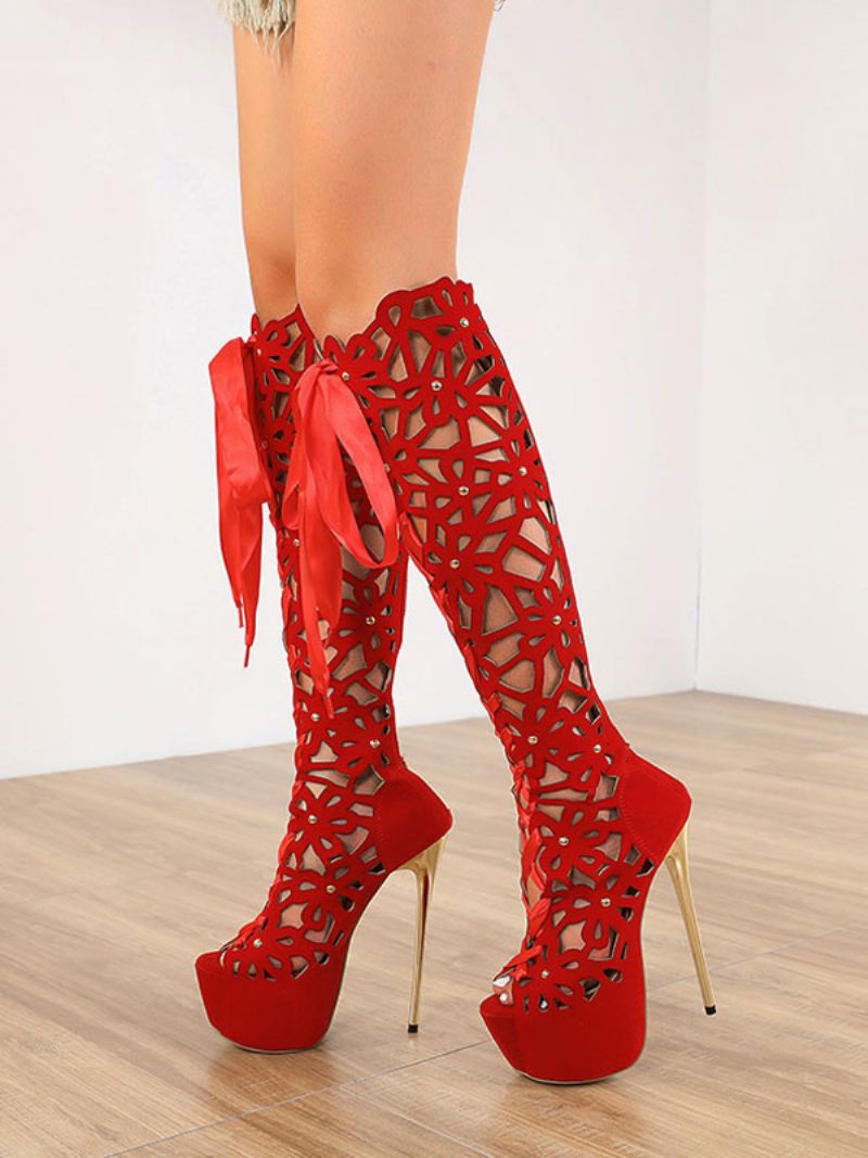 Damskie Sznurowane Letnie Buty Do Kolan Z Platformą