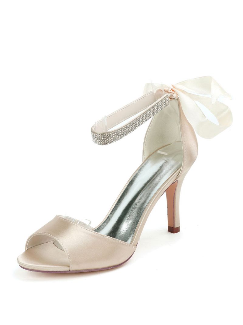 Damskie Sznurowane Sandały Ślubne Na Obcasie Z Paskiem Kostce