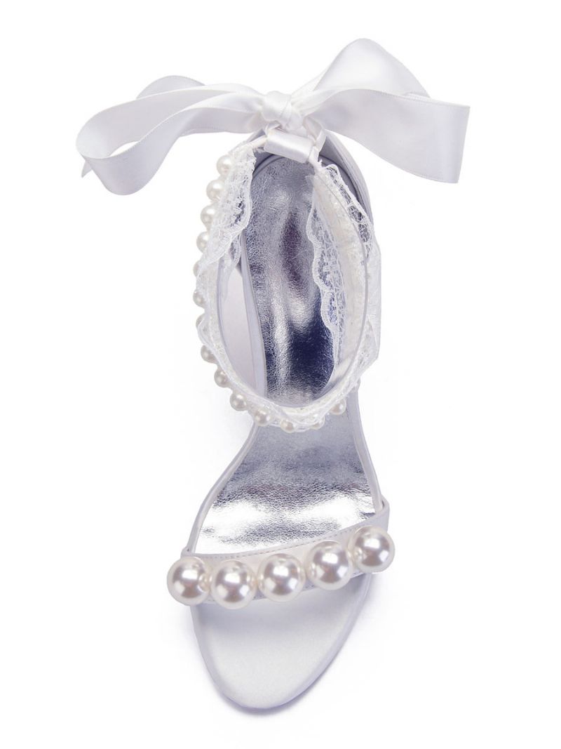 Damskie Sznurowane Sandały Ślubne Na Obcasie Z Perłami