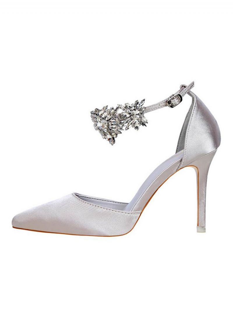 Damskie Wieczorowe CZółenka Na Szpilce Z Paskiem Kostce CZarnej Satyny