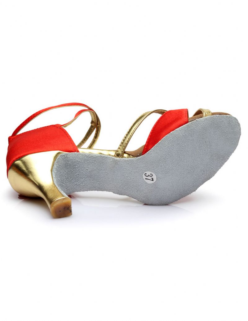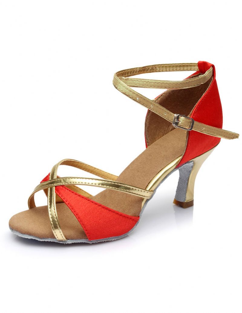 Damskie Wielokolorowe Sandały Do Tańca Latynoamerykańskiego Z Paskami Na Satynowym Obcasie