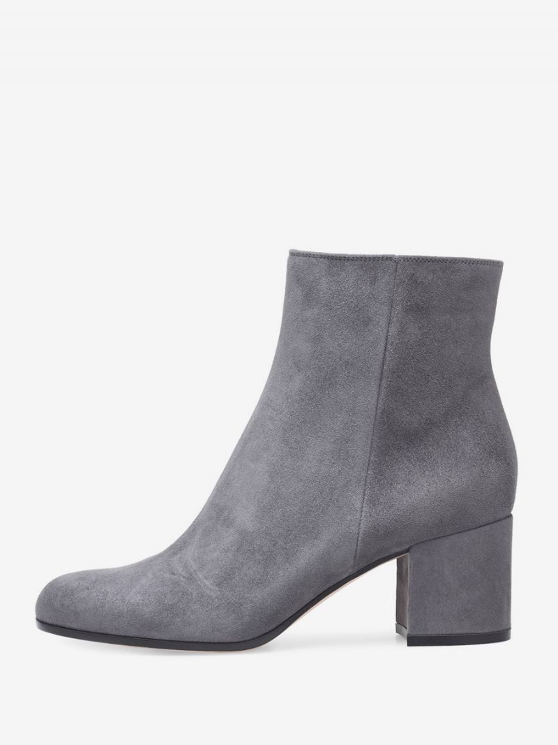 Damskie Zamszowe Botki Na Grubym Obcasie Z Okrągłym Noskiem