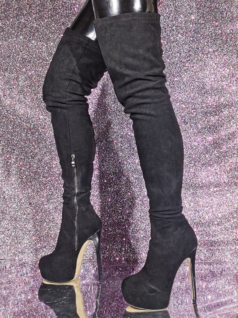 Damskie Zamszowe Buty Za Kolano Seksowne CZarne Platformy Na Wysokim Obcasie
