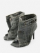 Denimowe Botki Damskie Z Odkrytymi Palcami Zaprojektowane Guzikami Na Wysokim Obcasie