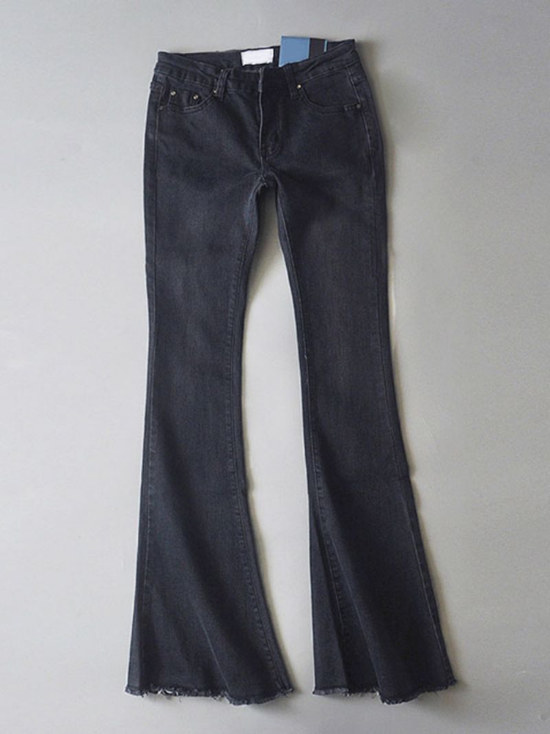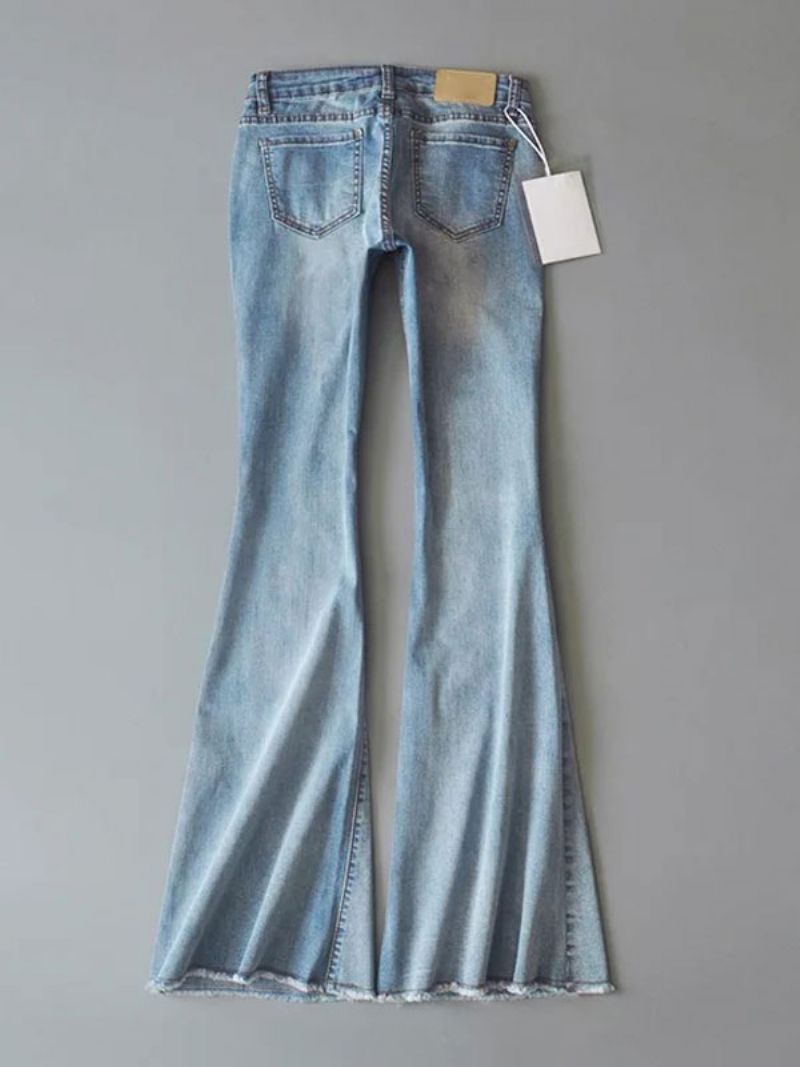 Dżinsy Damskie Modne Spodnie Z Dzwoneczkami Zamkiem Błyskawicznym I Guzikami Fly Niebieskie Dżinsowe