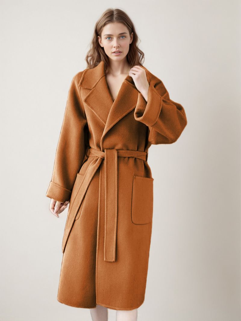 Kopertowy Płaszcz Damski Z Klapami Dużymi Kieszeniami Jednokolorowa Zimowa Odzież Wierzchnia