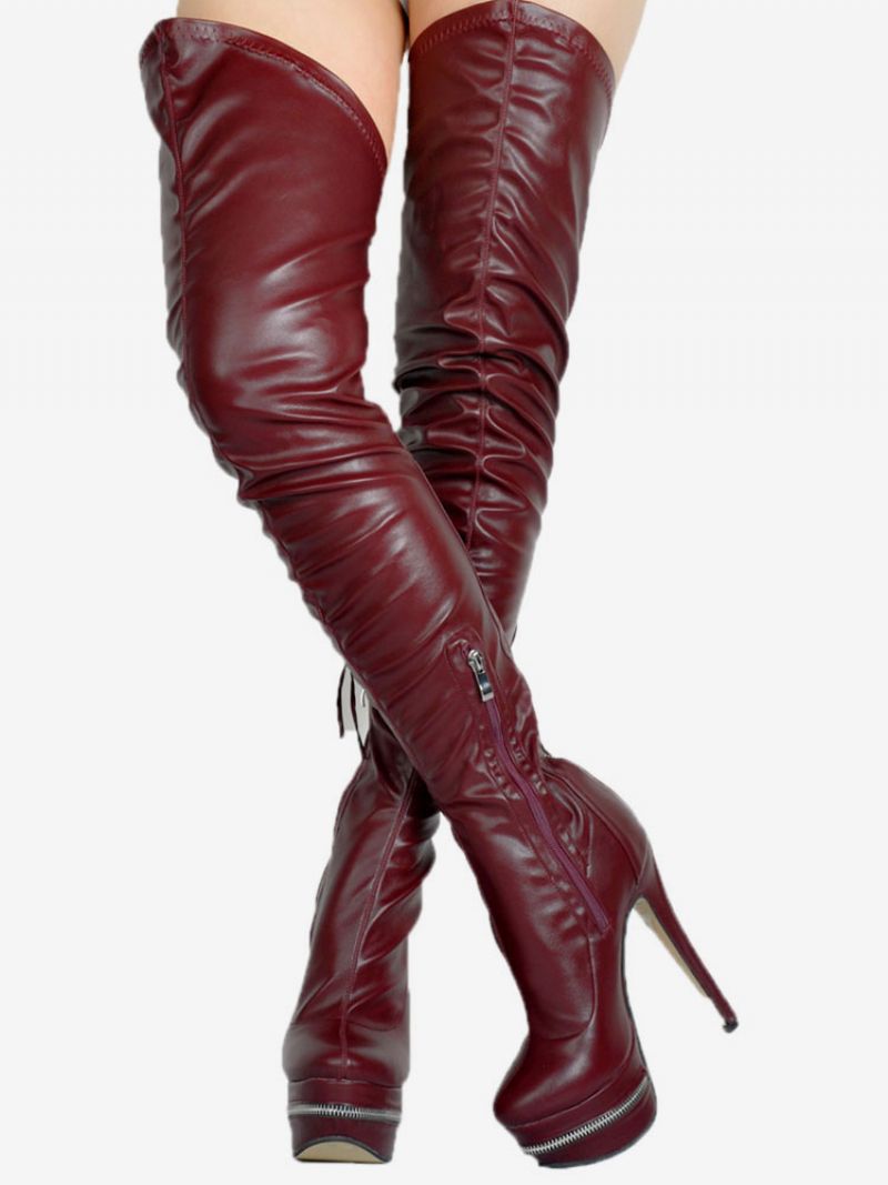 Kozaki Za Kolano Wysokie Obcasy Damskie CZarne Skórzane Zamek Błyskawiczny Z Tyłu Seksowne Buty Imprezowe