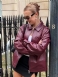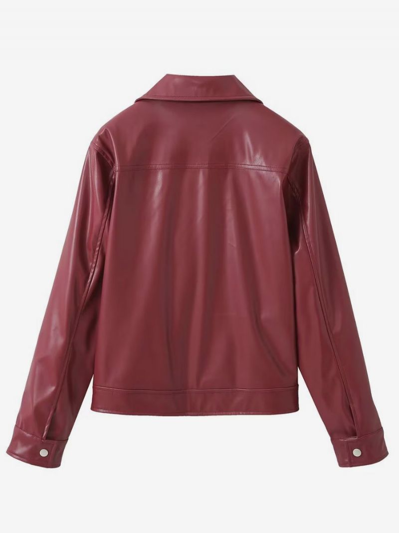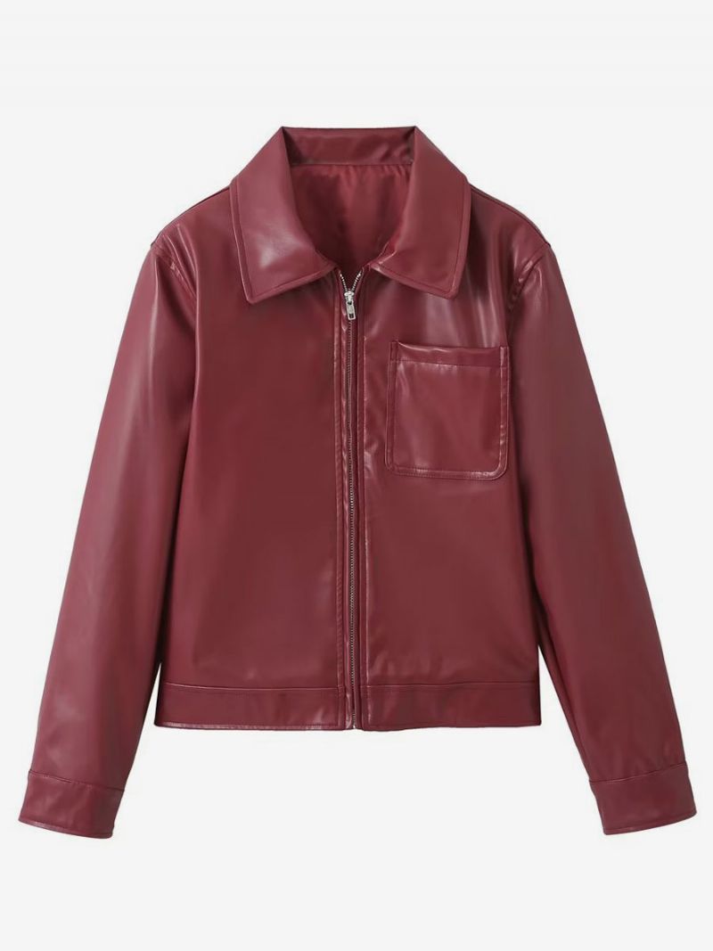 Kurtka Ze Skóry Pu Kołnierzyk Długie Rękawy Zamek Błyskawiczny Damska Odzież Uliczna