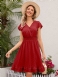 Letnia Sukienka Damska Linia A Krótkie Rękawy Dekolt W Kształcie Litery V Warstwowa Plisowana Talia Casualowe Sukienki Midi