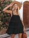 Letnia Sukienka Damska Z Kwadratowym Dekoltem Sznurowana Warstwowa Biała Krótka Plażowa