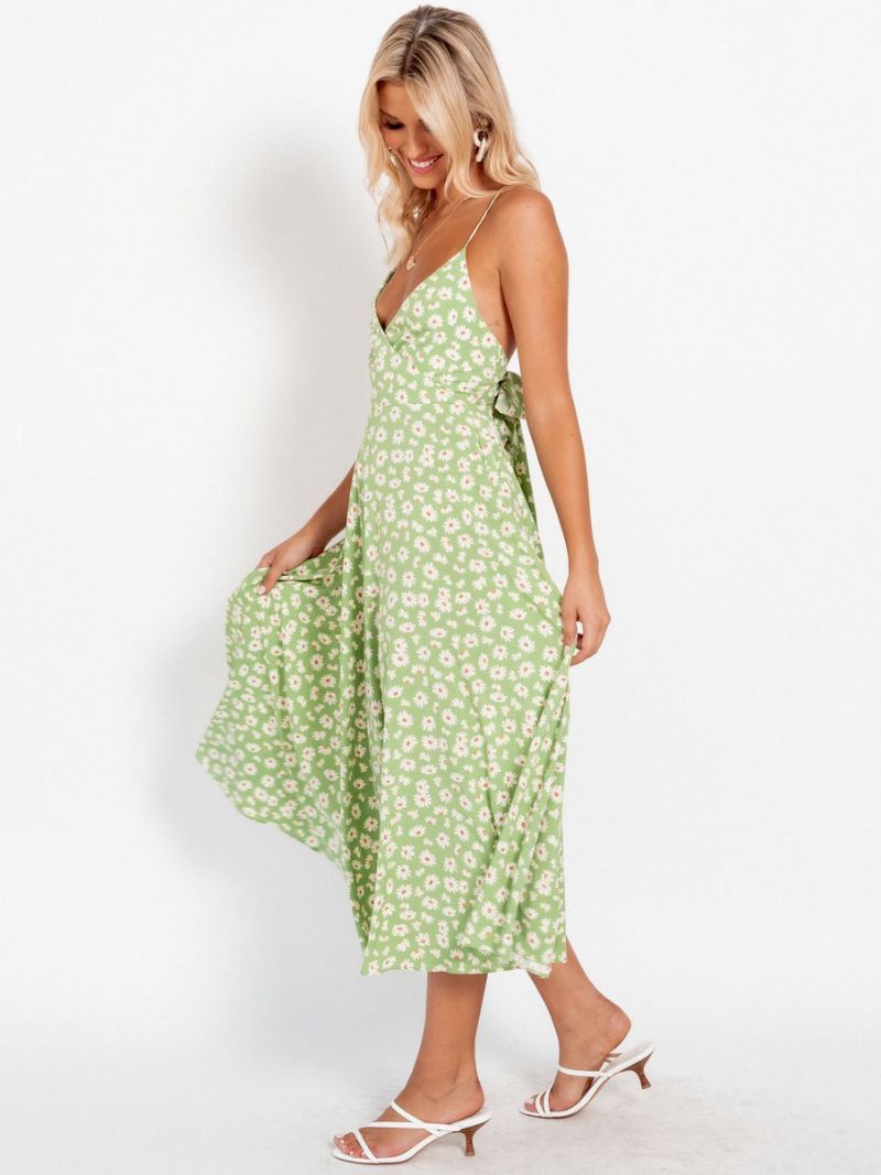 Letnie Sukienki Damskie W Kształcie Słonecznika Sukienka Plażowa Typu Swing Drobne Kwiatowe Wzory