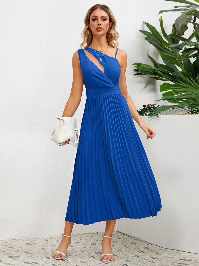 Letnie Sukienki Midi Dla Kobiet Z Wycięciem Asymetrycznym Marszczeniem Ramion