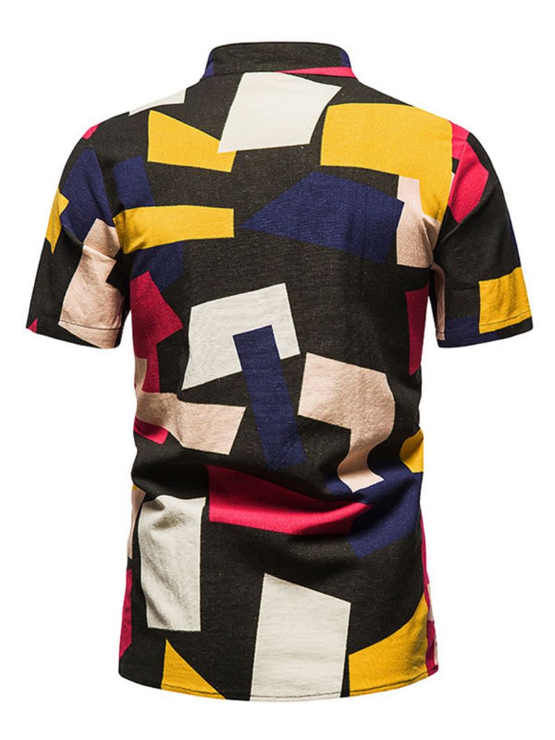 Męska Koszula Na Co Dzień Ze Stójką Klasycznym Nadrukiem CZarne Koszule Męskie