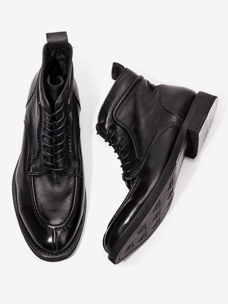 Męskie Buty Bojowe Motocyklowe W Stylu Retro Mahoniowe Ze Skóry Bydlęcej Z Okrągłymi Noskami