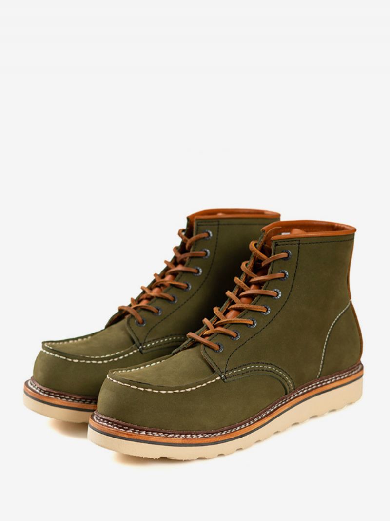 Męskie Buty Robocze Martin Głęboko Brązowe Bojowe Ze Skóry Bydlęcej Z Okrągłymi Noskami